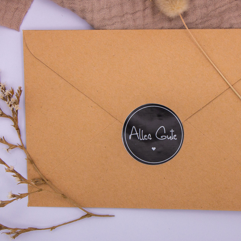 Mit diesen schönen schwarz-weißen Alles Gute Etiketten kannst du deine Geschenke zu etwas besonderem machen.